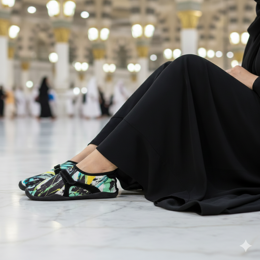 - تقدري تمشي بيه مسافات طويلة أثناء أداء العمرة وهيحمي رجلك من الأرض لان مع المشي الكتير بتحتاجي حاجة مريحة عشان تقدري تقاومي المسافات الطويلة وتقضي عباداتك وانتي مرتاحة👌